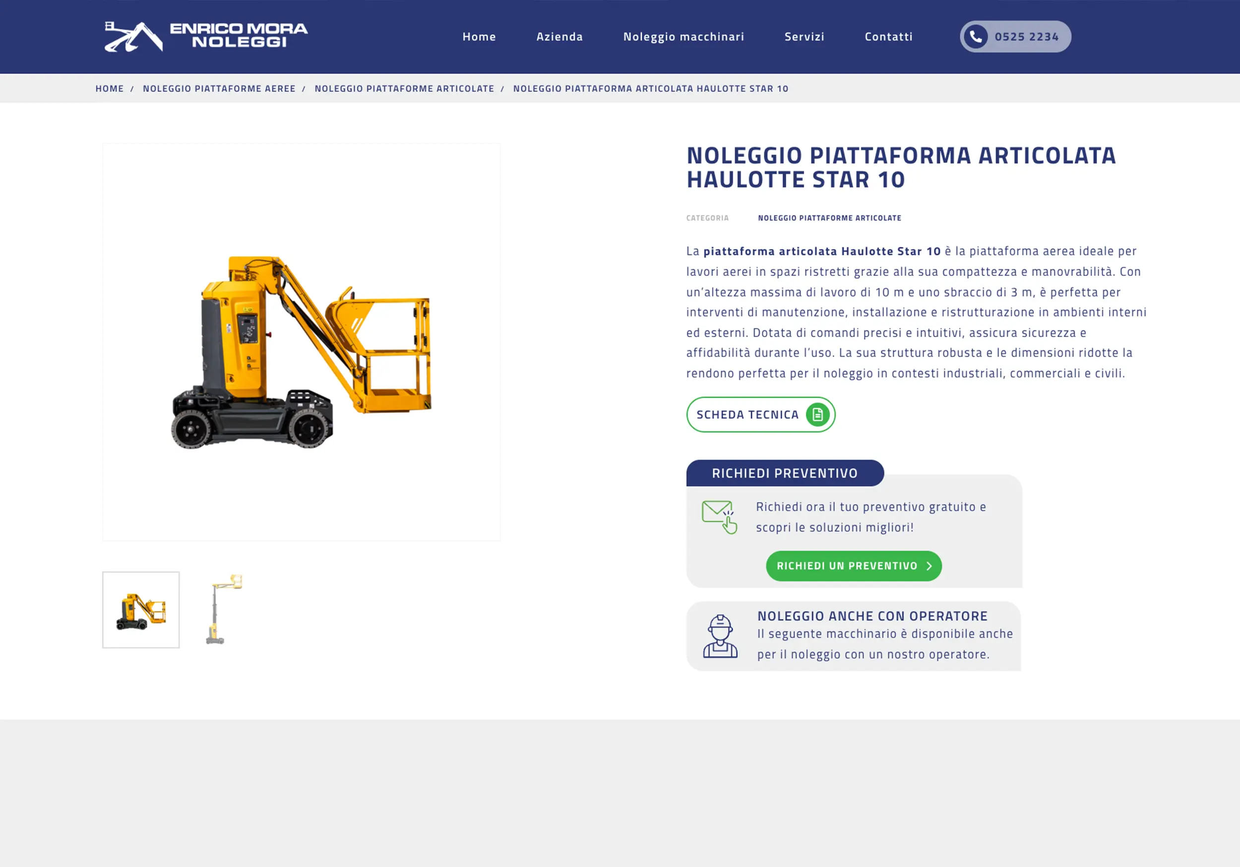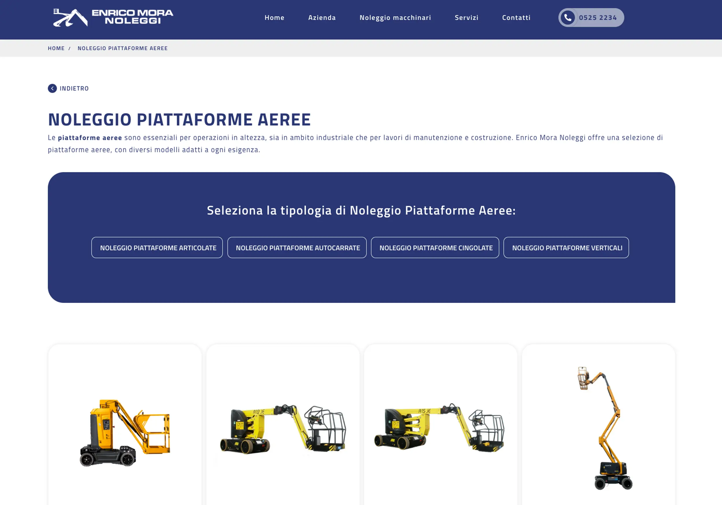 Il nuovo sito di Mora Noleggi rappresenta un importante salto di qualità: una piattaforma moderna, efficiente, ricca di contenuti e tecnologie pensate per semplificare il noleggio, migliorare il servizio e ampliare la visibilità del brand.